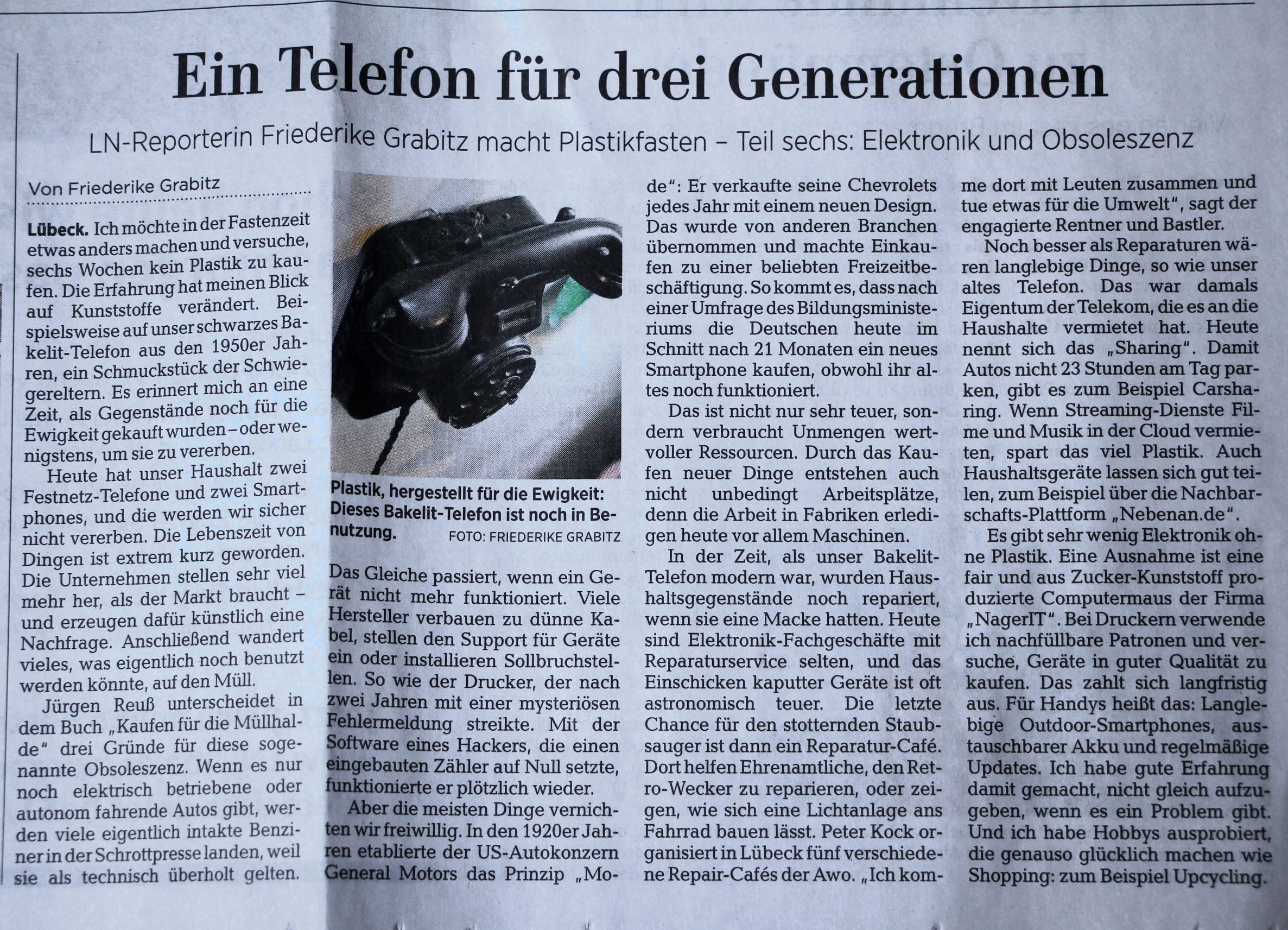 "Ein Telefon für drei Generationen" (Am 13.4.2019 in den "Lübecker Nachrichten")